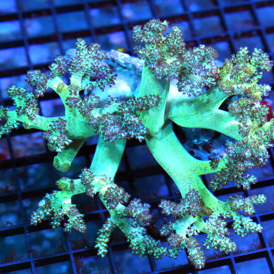 Kenya Tree coral has a soft, tree-like shape that sways gracefully in current. It is hardy, adaptable, and often recommended for reef keepers who want movement and texture without needing high-intensity lighting.